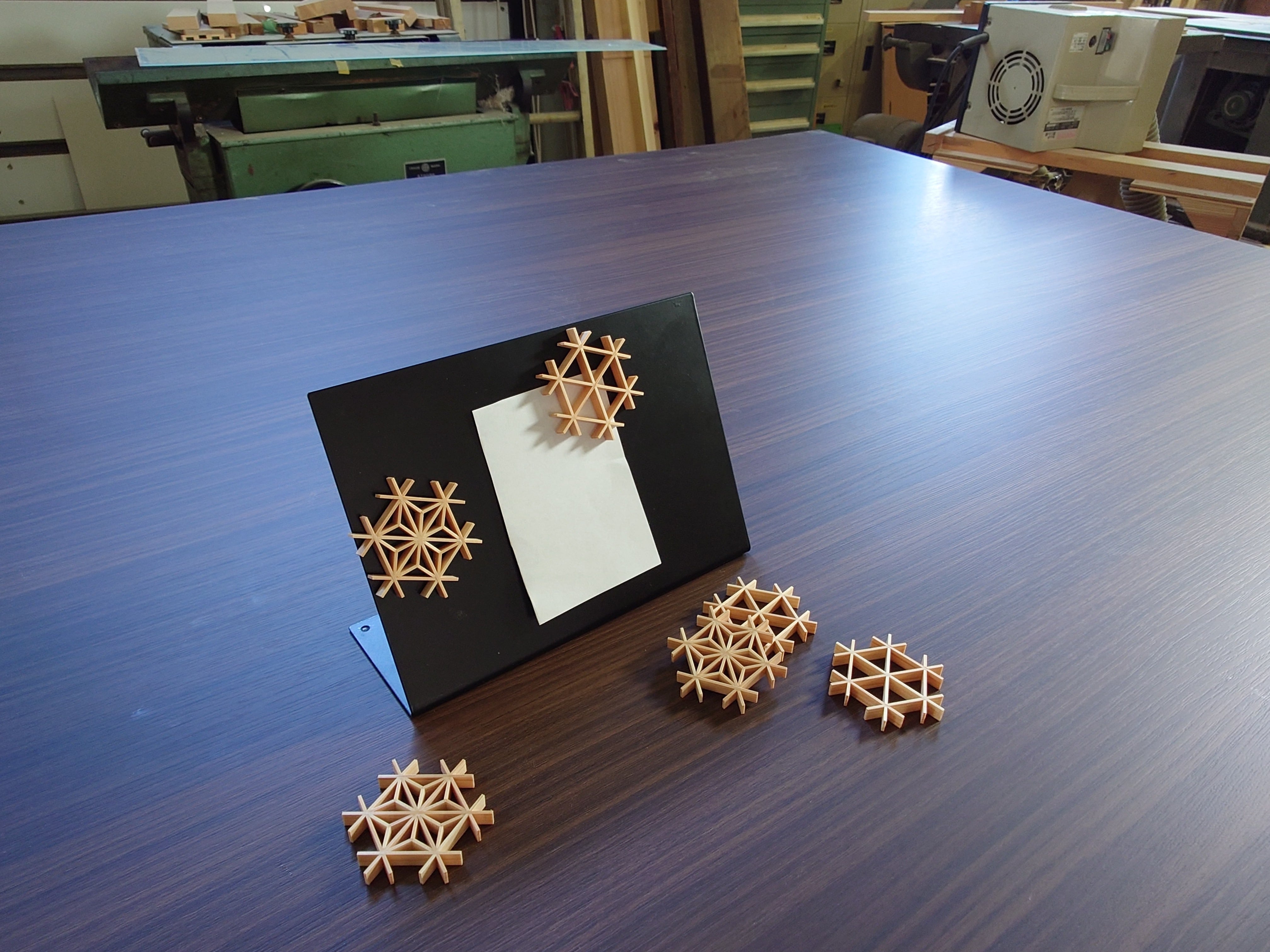 日本の伝統技法「組子細工」を、手のひらサイズのマグネットにしました。
