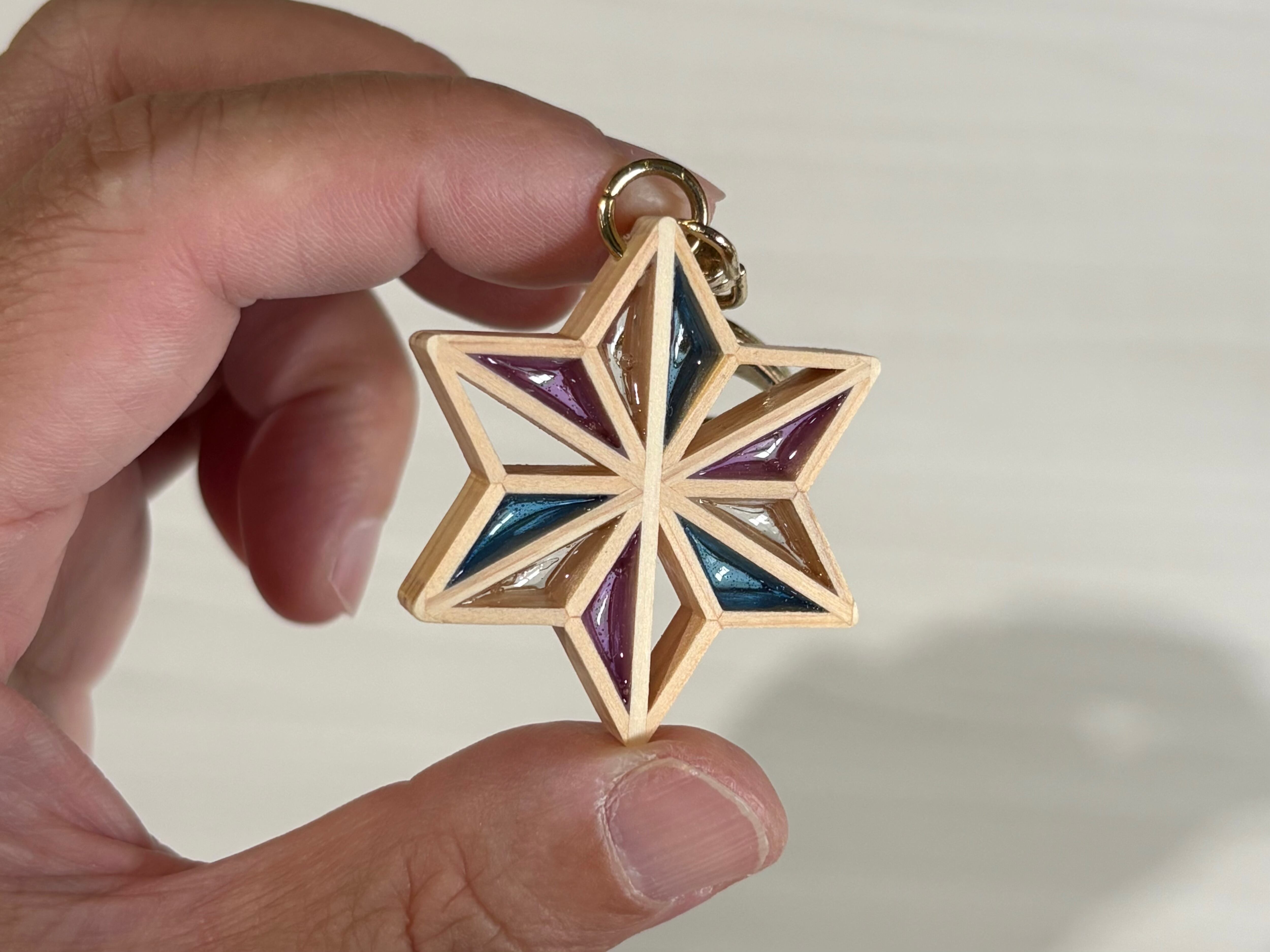 伝統技術である組子細工の「麻の葉」から切り出して星型に加工しています。