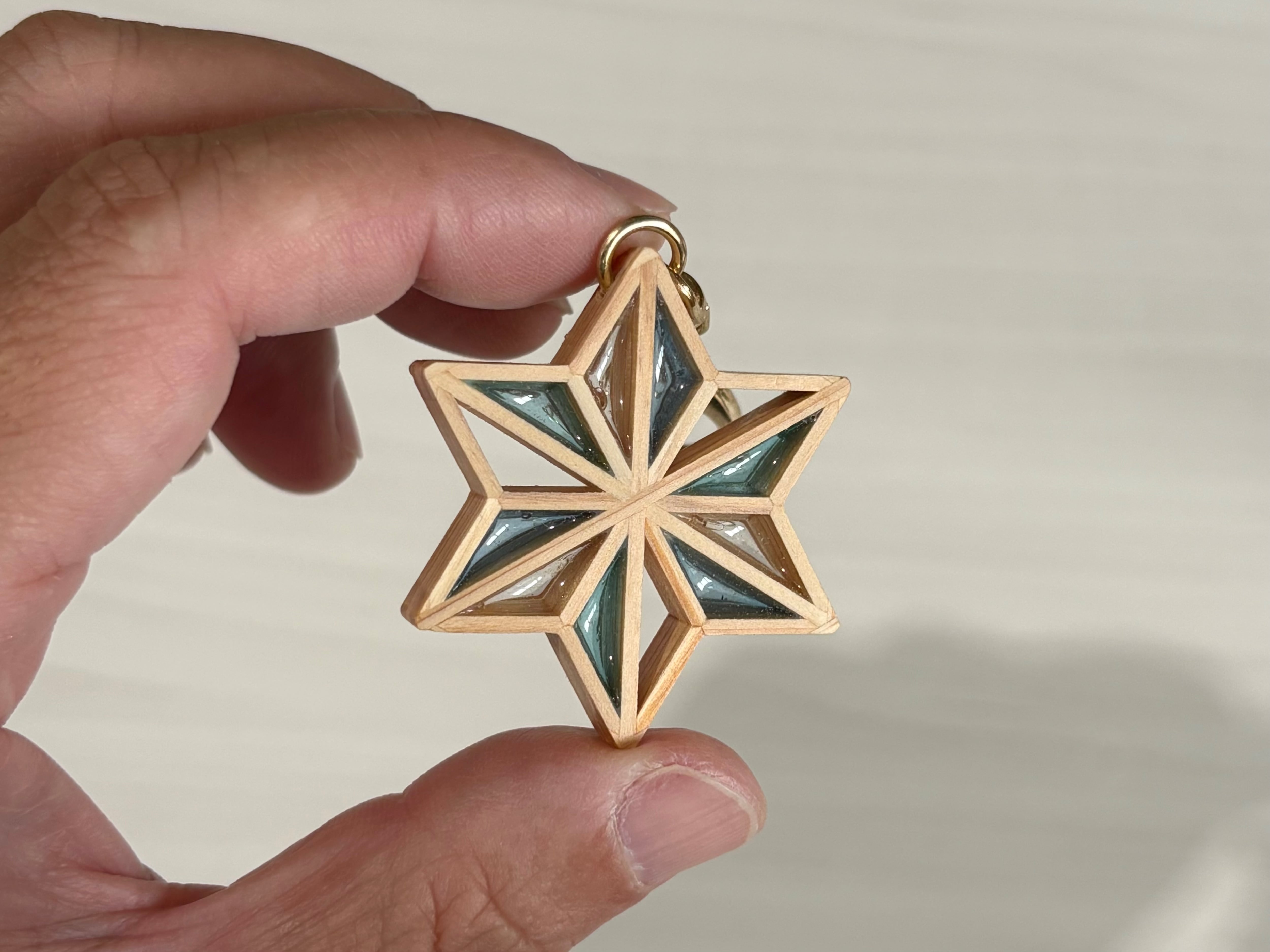伝統技術である組子細工の「麻の葉」から切り出して星型に加工しています。