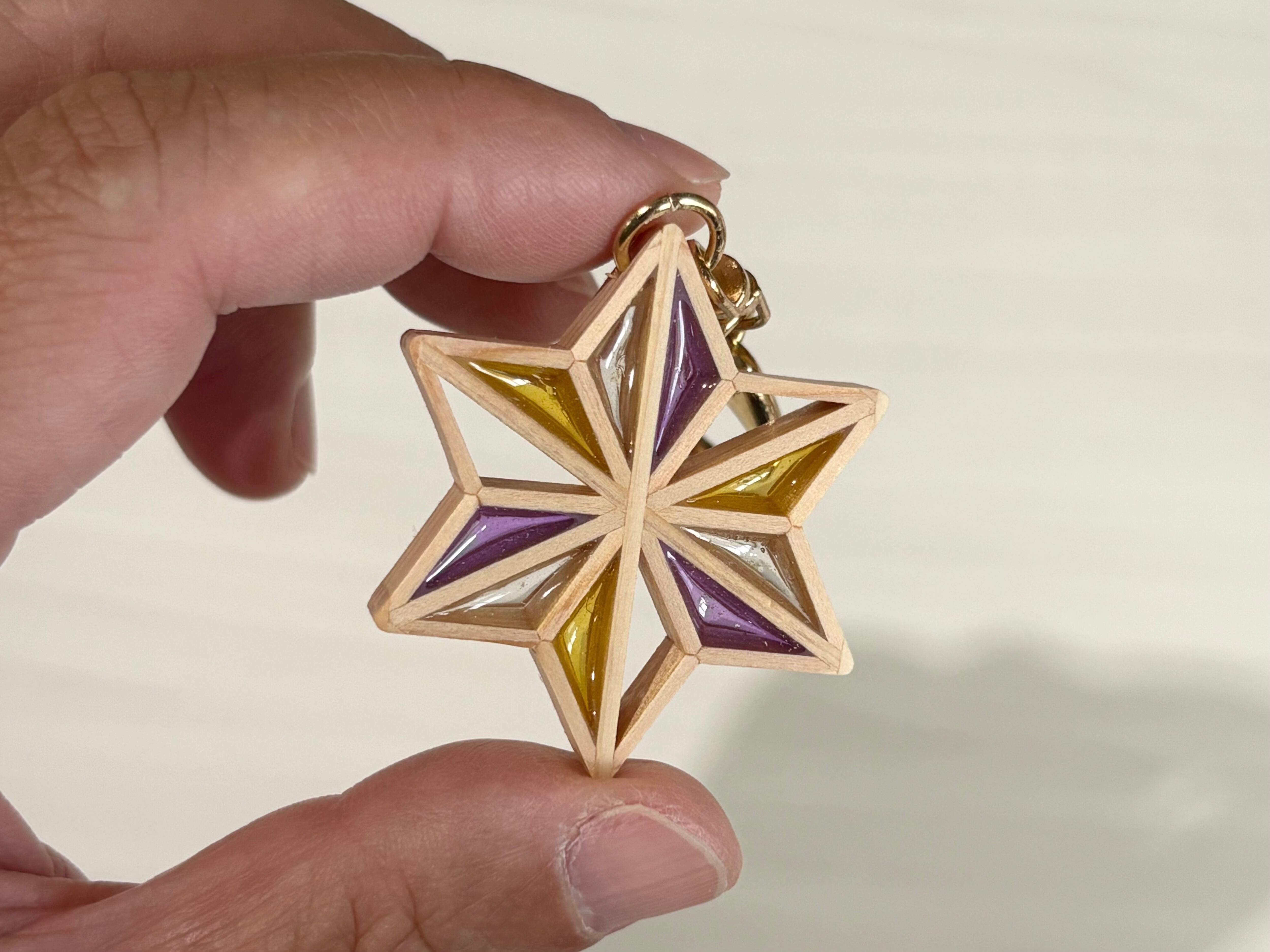 伝統技術である組子細工の「麻の葉」から切り出して星型に加工しています。