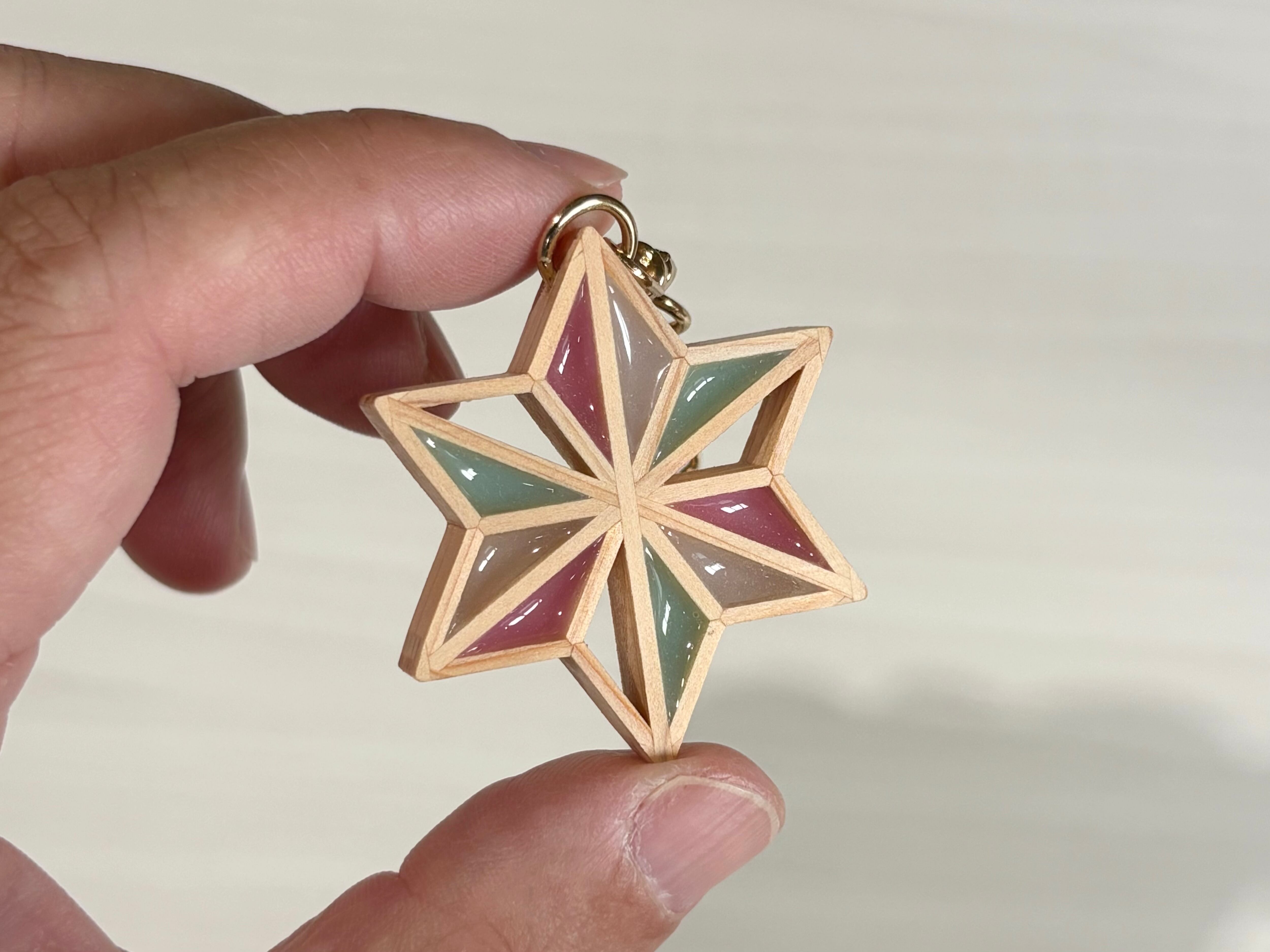 伝統技術である組子細工の「麻の葉」から切り出して星型に加工しています。